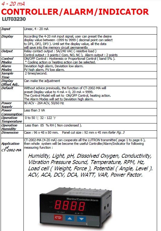 * 4 - 20 mA Controller/Indicator