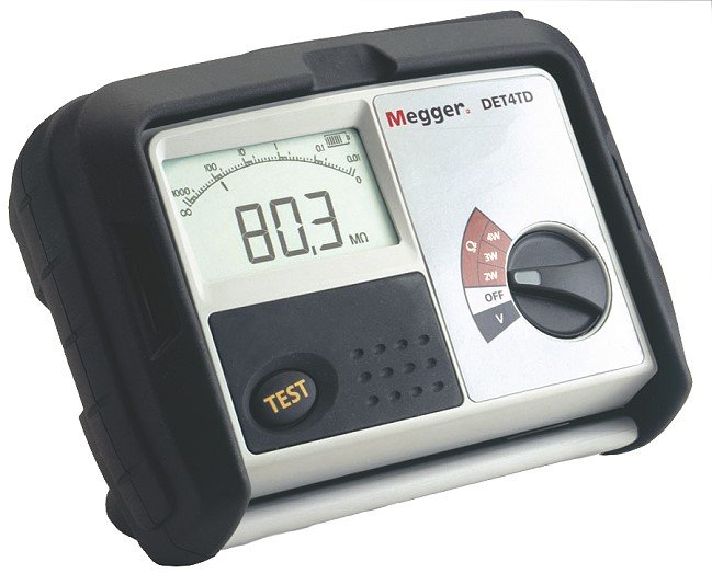 Megger’s DET4 family of ground testing instruments offers a unique solution to your ground rod and soil resistivity testing needs. The basic kit option comprises, the instrument, test leads, stakes, batteries and calibration certificate delivered in a tough polypropylene carry case -everything you need to start testing in one kit.The ground testers are rated to IP54 making it truly an outdoor instrument. The ground tester has been designed to be easy to use, a large selector switch makes selection of2pole, 3 pole or 4 pole test easy with gloved hands - and the design makes the fitting of shorting links to perform 2pole tests a thing of the past. A large, clear, easy to read LCD display and thumb sized test button again makes the instrument particularly suited to the outdoor conditions of ground testing.