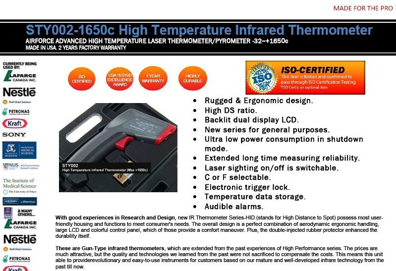 STY002-AIRFORCE 1650c High Temperature Infrared Thermometer