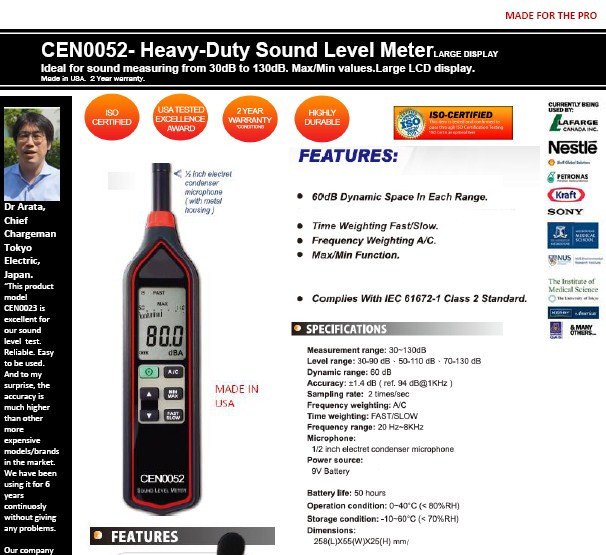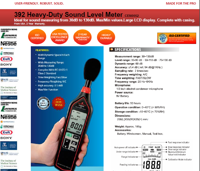 CEN0052-KKINSTRUMENTS 392 HANDHELD LARGE-DISPLAY SOUND LEVEL METER W/BARGRAPH - USAWell done, KKInstruments!