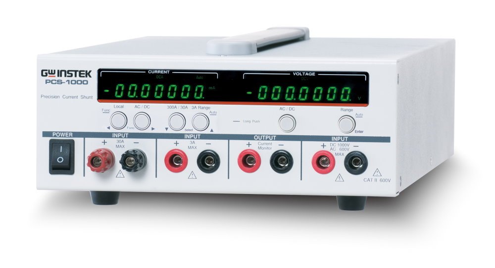 PCS-1000 is a High-Precision D.C. and A.C. Current Shunt Meter which carries built-in current shunts and high-accuracy current measurement circuits. PCS-1000 not only measures current in five current levels ─300A, 30A, 3A, 300mA and 30mA, but also measures voltage at 6 1/2-digit resolution simultaneously. This unique feature puts PCS-1000 in an unprecedented position among all the shunt meters available in the market today. After a long time operation, PCS-1000 is able to maintain high measurement accuracy in spite of the temperature variation. This is due to its core design based on the high stability and low temperature coefficient shunts. PCS-1000, a verification-lab level current and voltage measurement equipment, is suitable for the R&D, quality verification and testing jobs of all power products such as power supply, communications system power, server power and electronic load. The maximum voltage/current measurement ranges of PCS-1000, including DC 1000V / AC 600V / AC 300A / DC 300A, meet all current and voltage measurement challenges of every power industry.